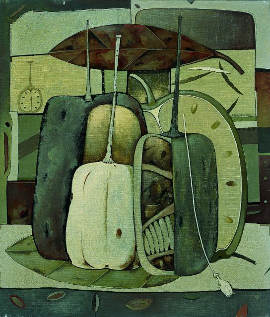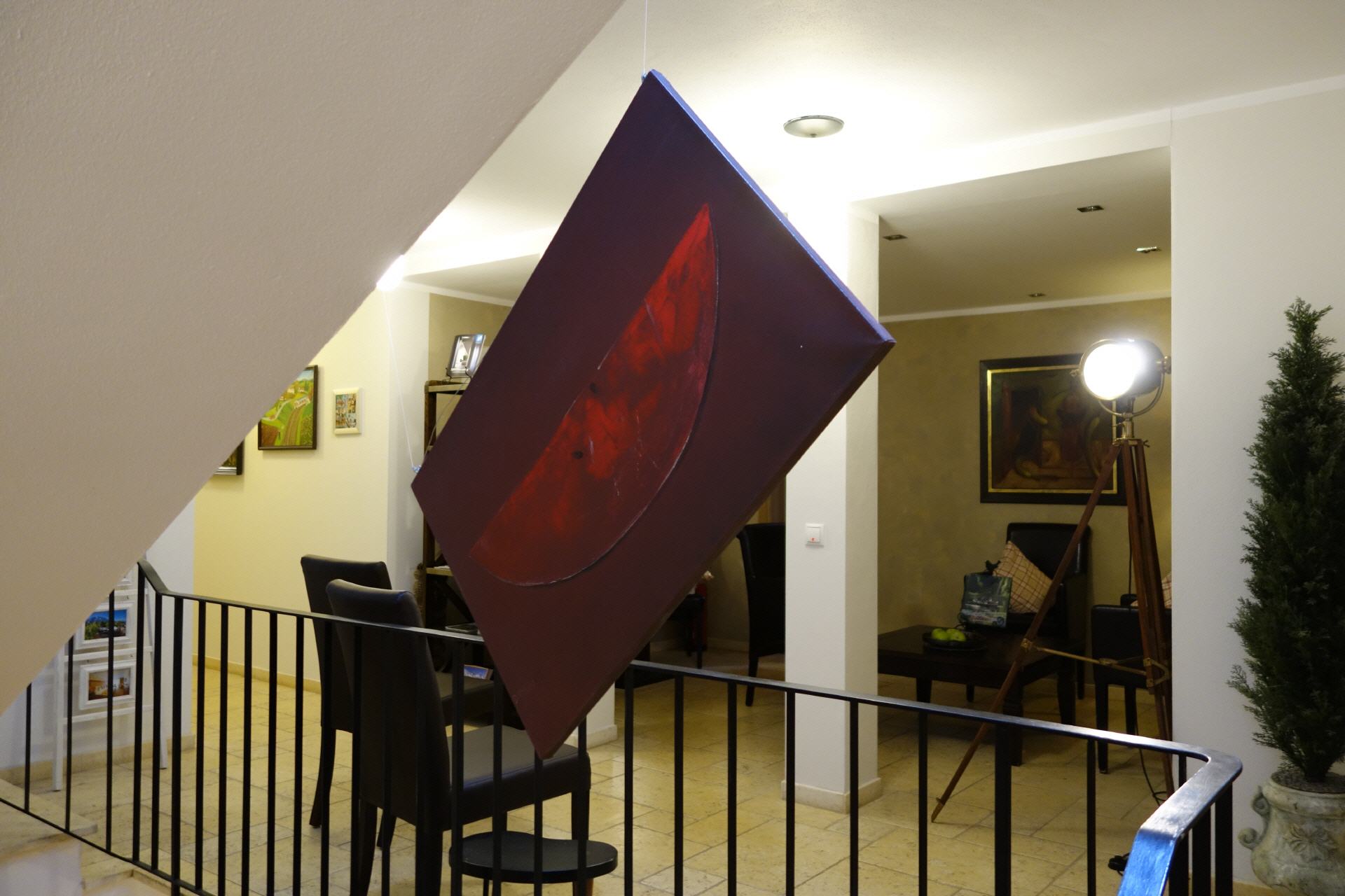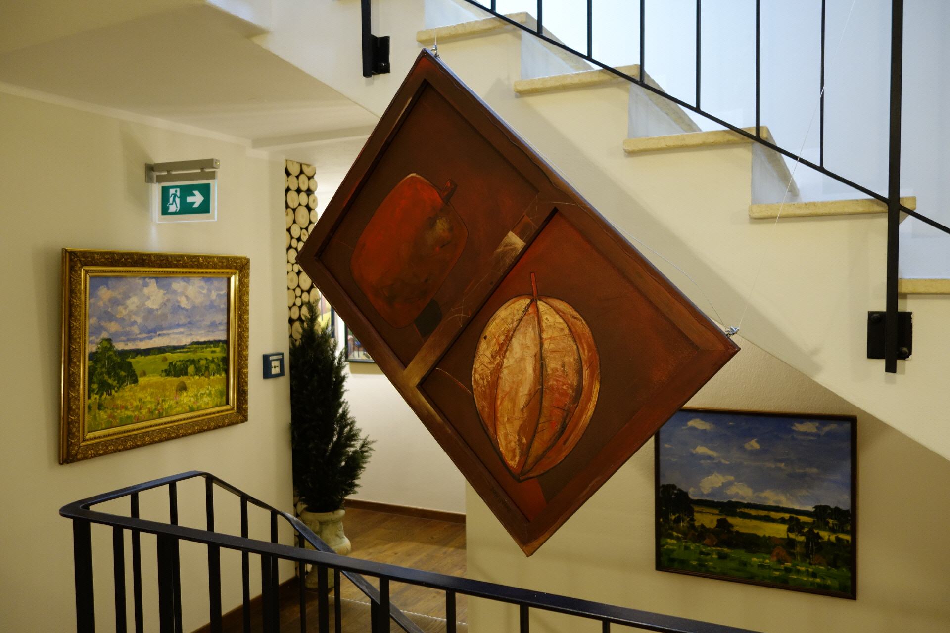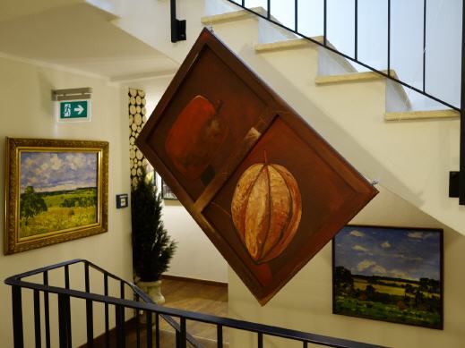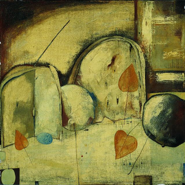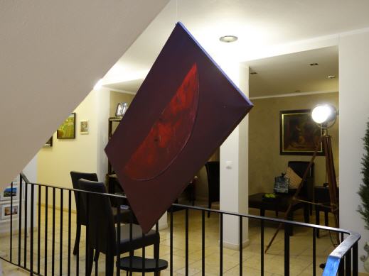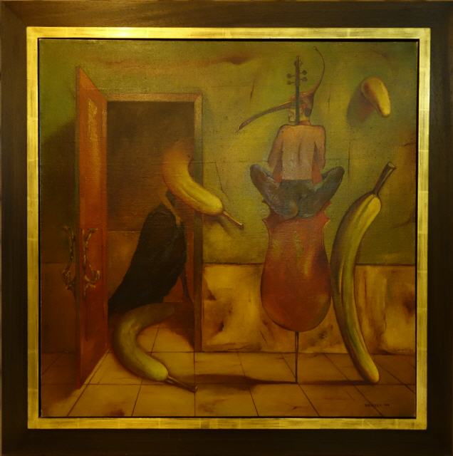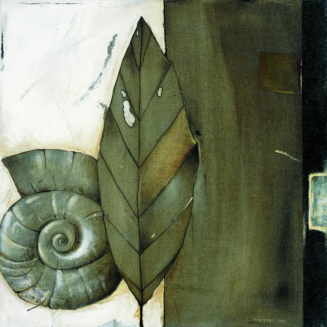 In dieser Ausstellung werden die Arbeiten des Projektes der vergangenen zwei Jahre gezeigt: "Früchte. Von Adam bis Freud." Der biblische Apfel ist jedem bekannt, ebenfalls das Verhältnis zwischen Newton und dieser Frucht. Schon immer waren Früchte Objekte, die das besondere Interesse der Künstler angeregt haben. Als Thema also sehr traditionell, aber auch deswegen besonders interessant, denn dies macht die Suche nach einer neuen, unerwarteten Stilistik, die markant und einprägend ist, notwendig. Darstellung der Früchte in unerwarteten Reduktionen, Suche nach Kompositionslösungen, Frakturfläche, bedingte Farbe, graphischer Charakter der Arbeiten - das sind meiner Meinung nach die wesentlichen Kennzeichen dieser Arbeiten. Aber auch andere Themen finden meine Aufmerksamkeit. Stillleben, oder Architekturlandschaften, Abstraktionen, sowohl Expressive als auch Minimalistische, Collagen mit verschiedenen Materialien (Stoff, Blei, Holz usw.) - und das ist noch nicht alles: die Suche nach Neuem ist andauernd. Ich arbeite ständig, viel und mit nicht nachlassendem Interesse.