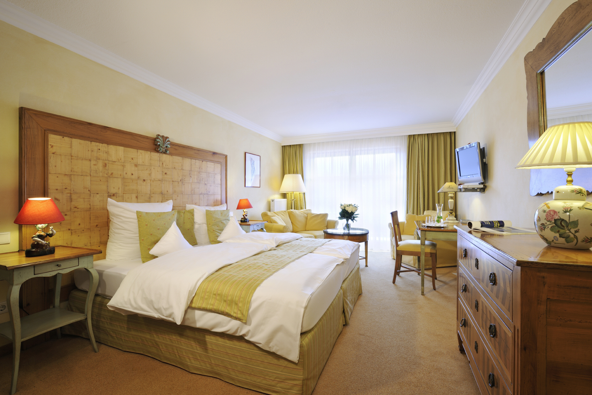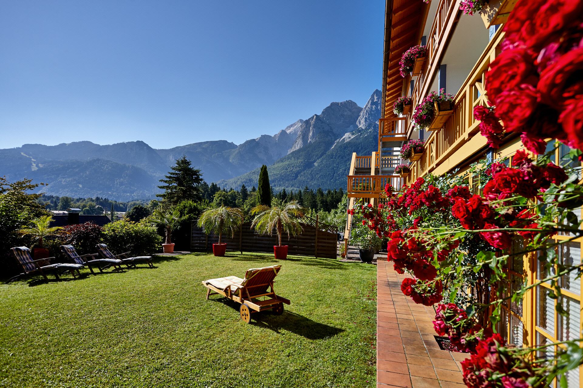 In einer malerischen Bilderbuchlandschaft direkt am Fuße der Zugspitze mit einmaligem Panoramablick auf eine grandiose Bergkulisse ist das Alpenhotel zu jeder Jahreszeit ein alpines Urlaubserlebnis und ein idealer Rückzugsort für Sportbegeisterte, Erholungssuchende und Gourmets. Kulinarischer Genuss einer modernen, regionalen Küche bietet das Restaurant Henri-Philippe und kombiniert Haute Cuisine mit alpenländischen Spezialitäten.