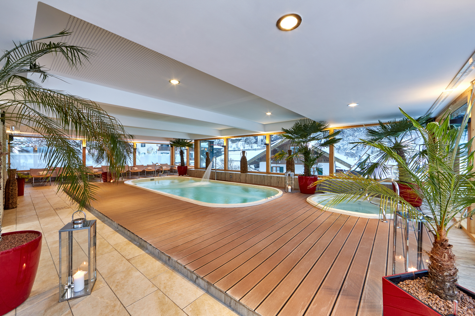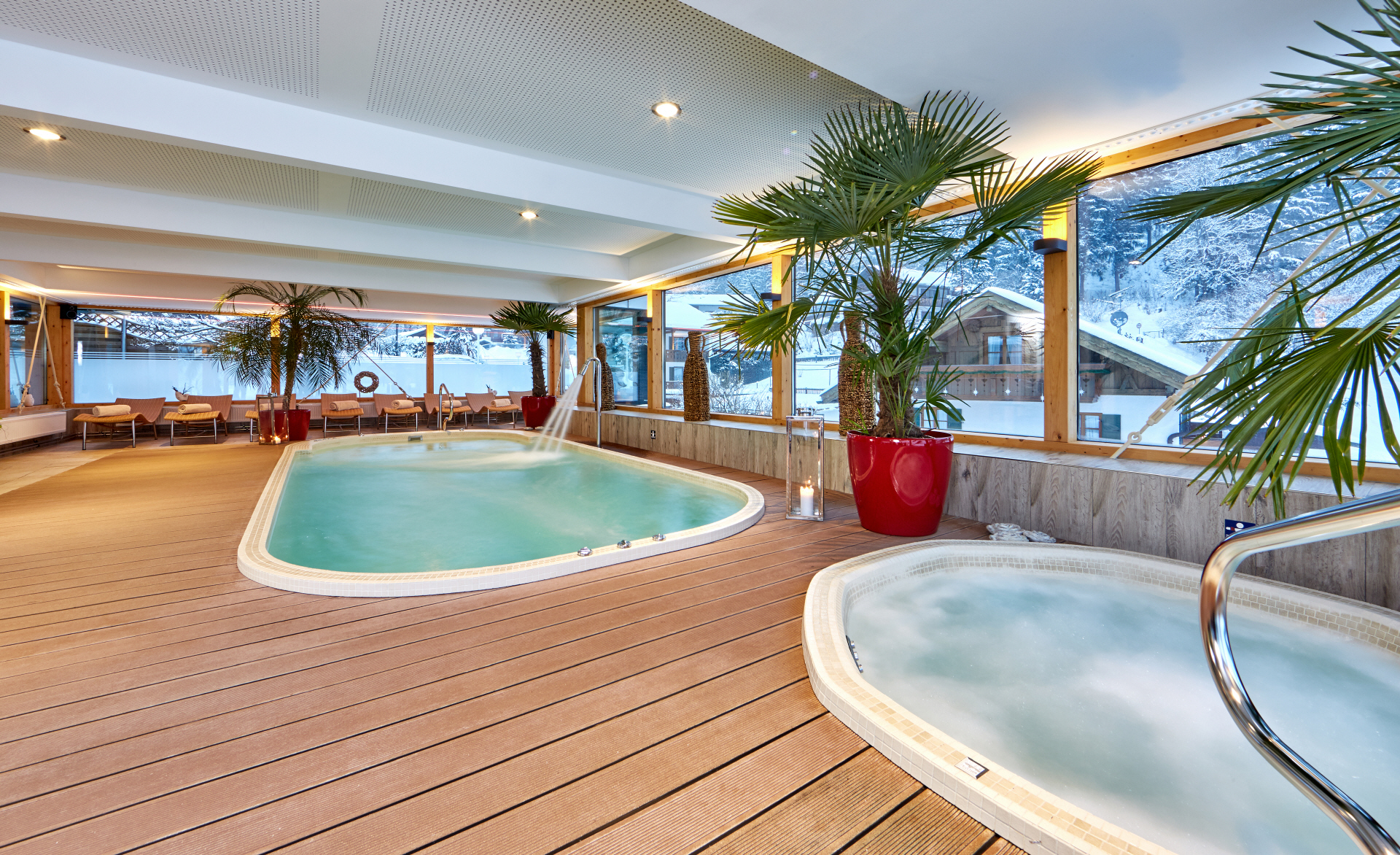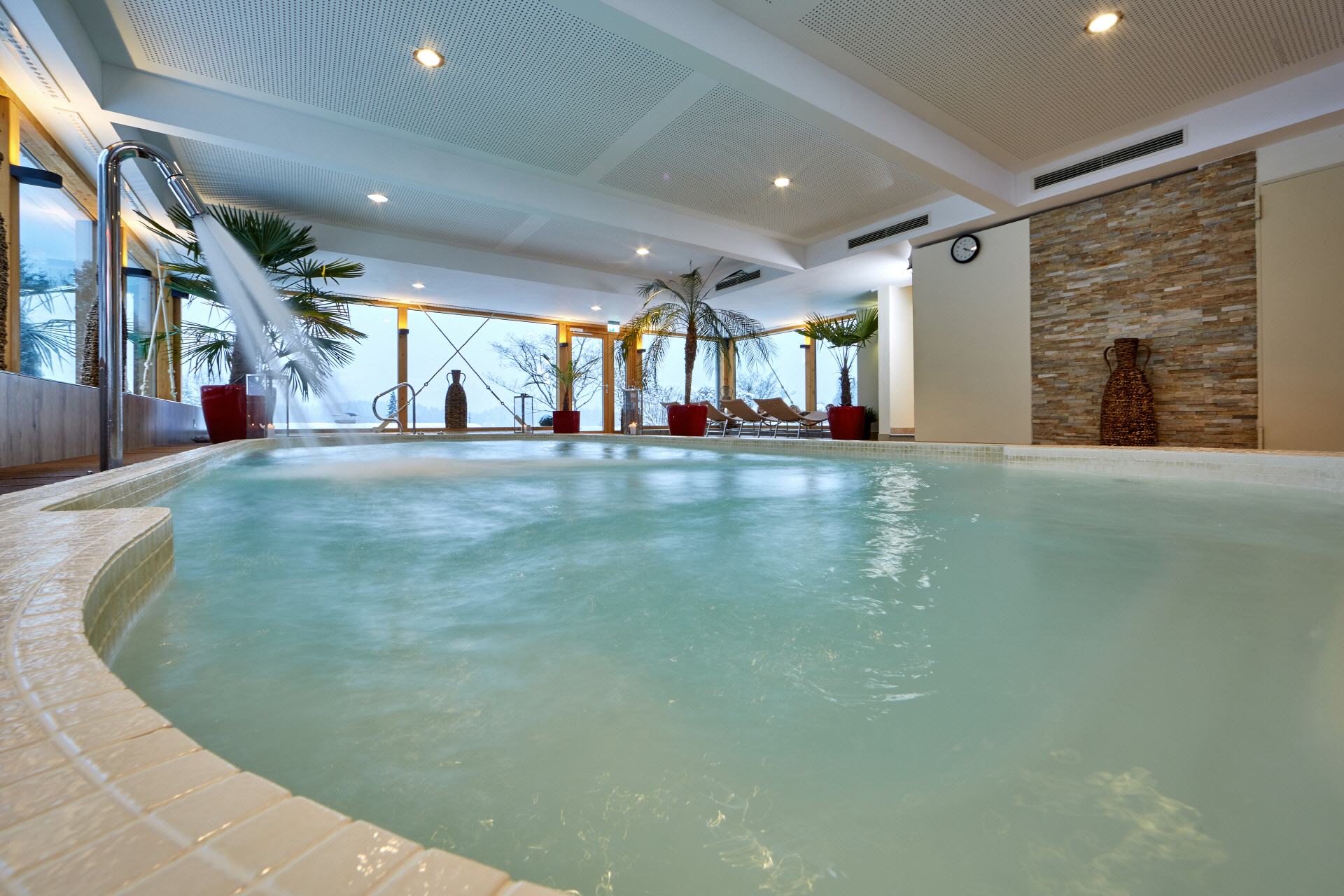 Stress lässt sich im Alltag nicht immer vermeiden. Deshalb ist es besonders wichtig, dass man sich zwischendurch eine kleine Auszeit gönnt. Sich Zeit für sich selbst zu nehmen und dabei abzuschalten wirkt wahre Wunder. Der kleine Wellnessbereich im Romantik Alpenhotel Waxenstein wird Ihnen die Zeit und Ruhe geben, die Sie brauchen. Nach einem aktiven Tag in unverfälschter Natur mit frischer Bergluft können Körper, Geist und Seele zur Ruhe kommen und neue Energie schöpfen. Sie haben bei uns die Möglichkeit, sich mit allen Sinnen im stilvollen Ambiente zu erholen: Gewinnen Sie Abstand vom Alltag und finden Sie Entspannung im Saunabereich mit Dampfbad. Genießen Sie Ihre Wohlfühlmomente während einer Behandlung aus unserem VitalAlpin Wellnessprogramm mit hochwertigen natürlichen Pflegeprodukten aus der Alpenregion oder entspannen Sie einfach in unseren kleinen Pools. Die Panoramafenster der kleinen lichtdurchfluteten Badelandschaft mit Whirlpool geben den Blick frei auf die Dächer von Grainau sowie die umliegenden Wälder und Berggipfel. www.vitalalpin.de