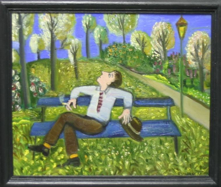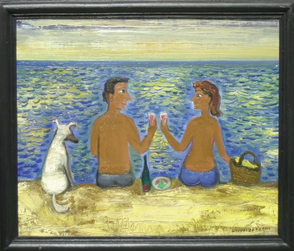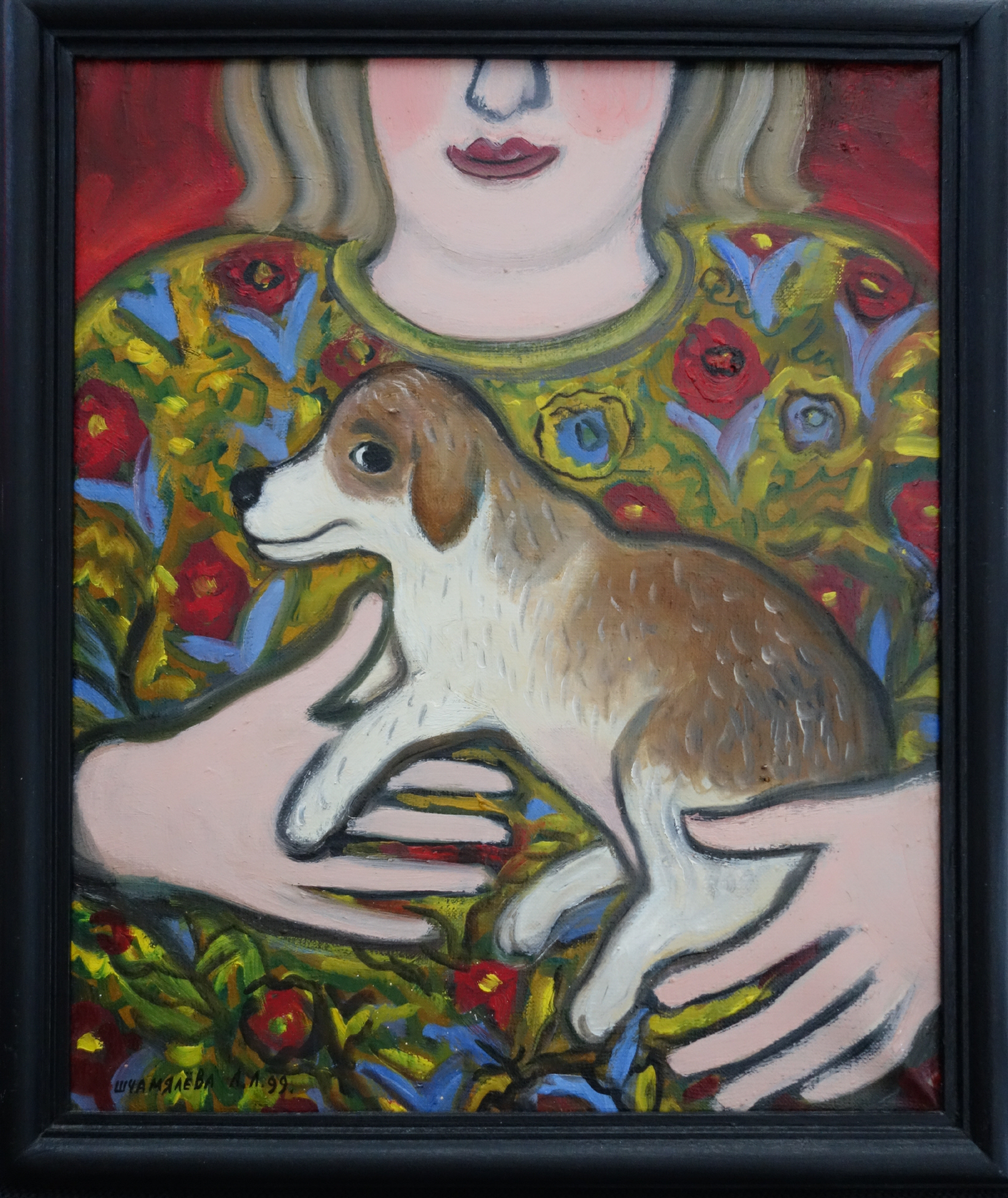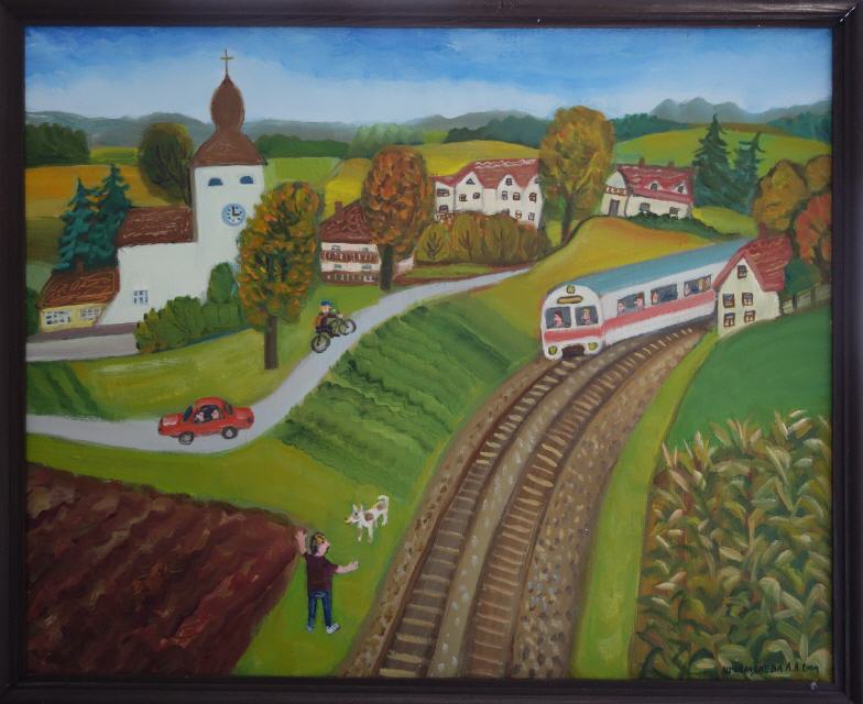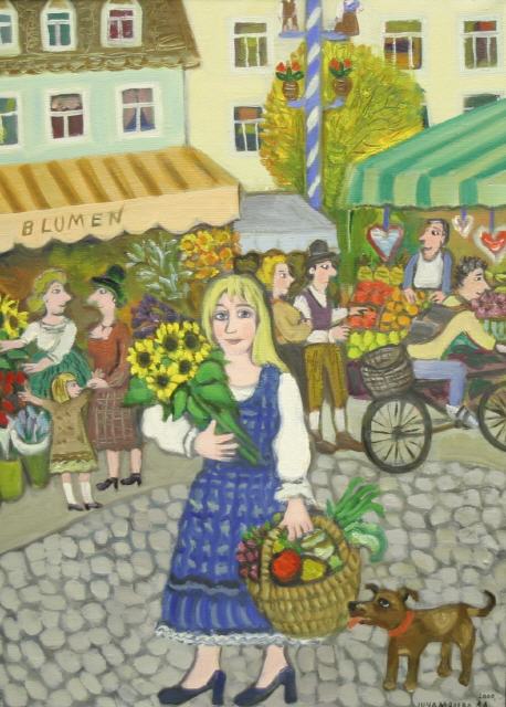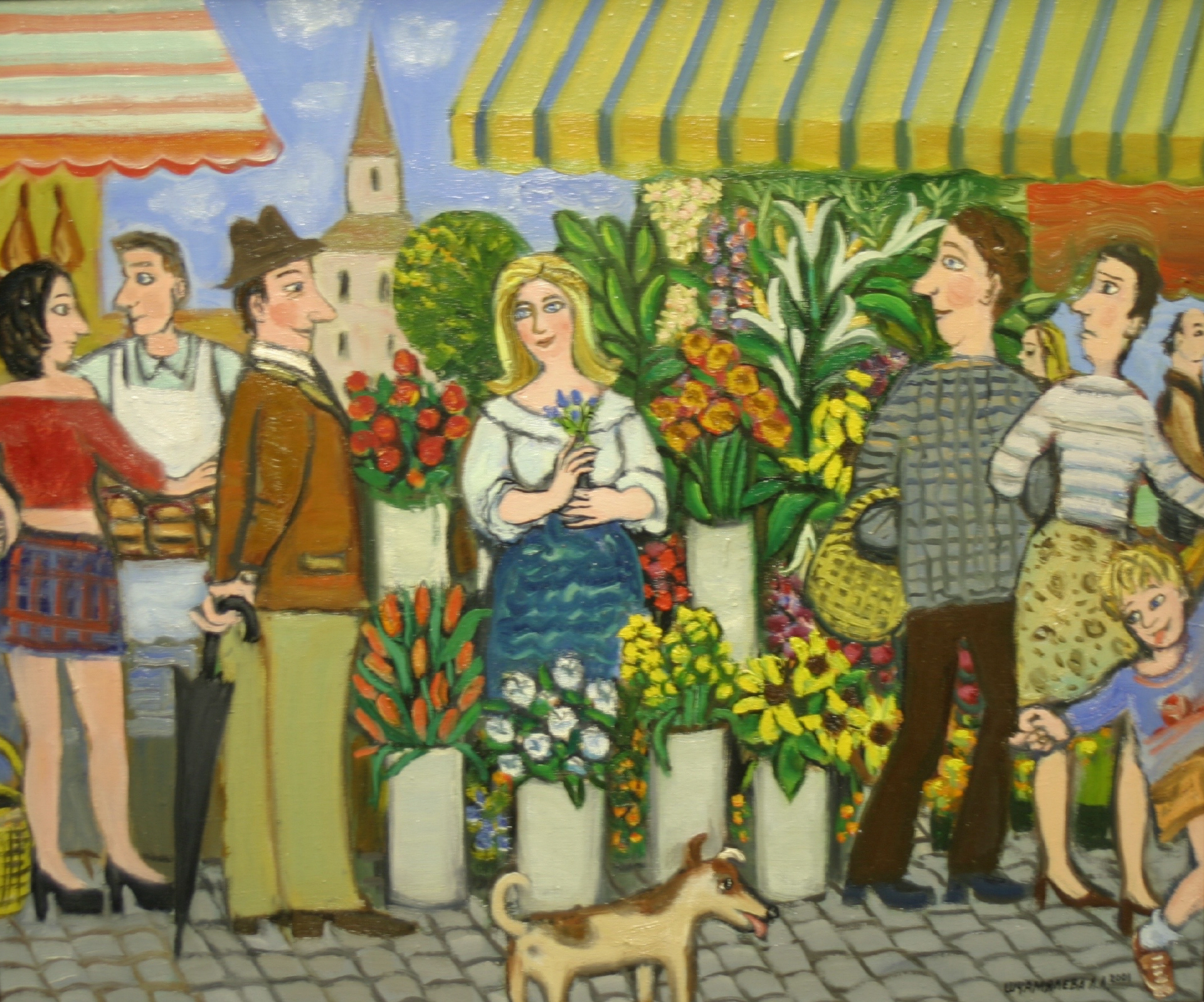 Ludmilas Arbeiten zeigen mit fröhlichem Humor städtische Folklore und ländliches Leben. Ihre besondere Liebe gilt den Freunden des Hauses, Katzen und Hunde begleiten den oft mit Ironie versehenen Alltag der Menschen im Miteinander.